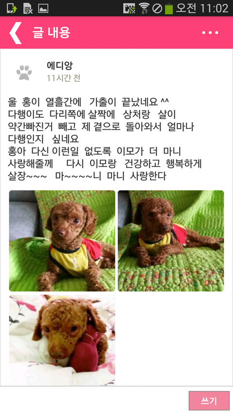 얼마 전 잃어버렸다는 "홍이"를 기억하시나요?좋은 소식이 있어서 퍼왔습니다.