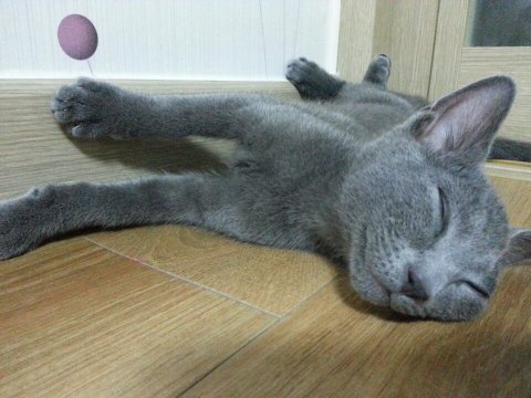 방바닥온도를 높였더니 더워서 저렇게 방구석에 도망갔어요