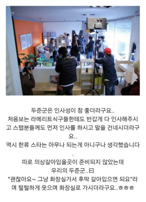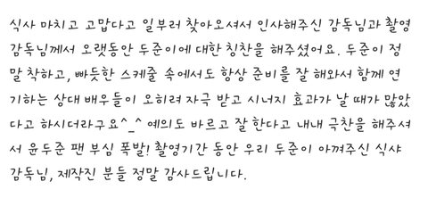 촬영현장에 서포트한 홈마에게 촬영감독이 직접 찾아가 한 윤두준칭찬!