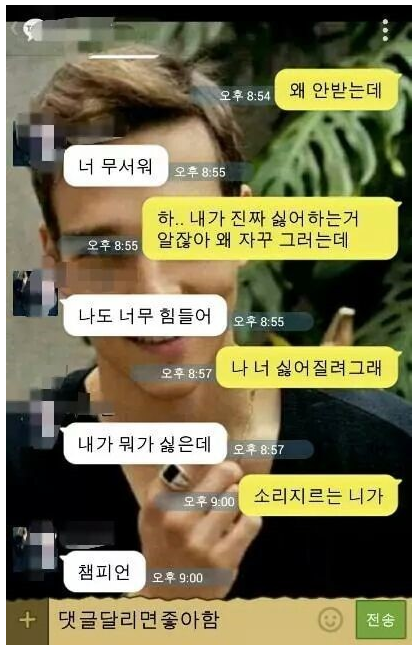 미틴넘 지가 시원챦으면 투잡쓰리잡 하면 될 걸 완전 쓰니한테 빨대 꽂으려 작정했구만 정나미 떨어지네