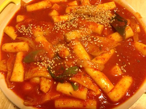 고추장이 전혀 안들어가 텁텁하지 않고 깔끔한 떡볶이. 파프리카 홍고추 고추가룰 갈아서 사용~~ 파프리카의 달달함이 잘 어우러짐.