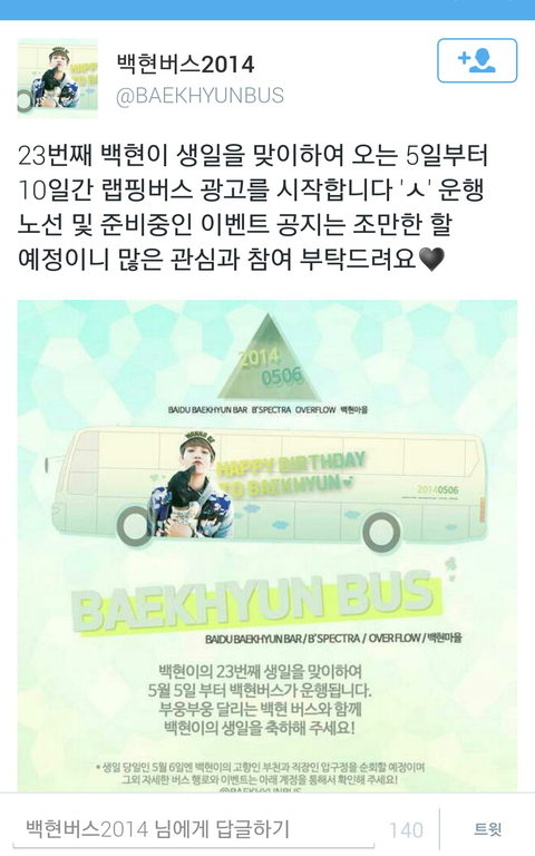 백현이 생일기념 버스운행 광고 탑승은 못한다함ㅜㅜ