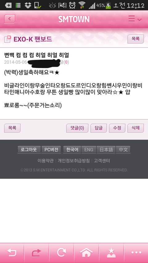 팬보드에 글올리고옴ㅋㅋ