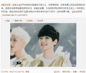 중국 전역 19개의 학교의 1867명 어린이들의 점심을 위해 5600위안을 기부'했다