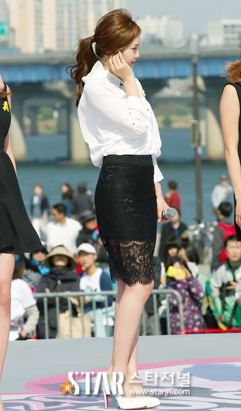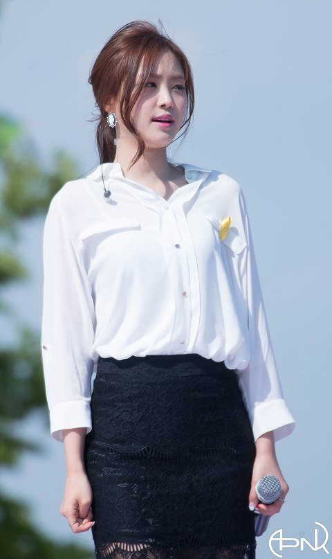 어제 행사에서 흰셔츠 시스루스커트 손나은포텐