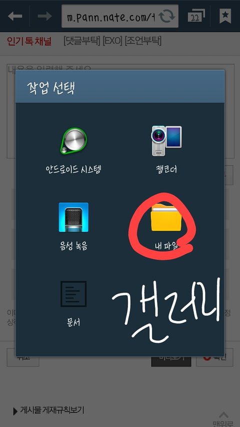 저는 갤러리가 않떠서 내파일로 하는데 갤러리가 뜨면 갤러리 클릭해서 사진을 선택하세요