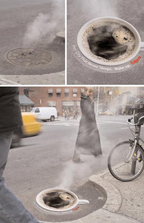 우와 진짜 아이디어 기발하다 아니 맨홀에서 올라오는 연기인가?그곳에 어찌 커피 광고할 생각을 했을까ㅋㅋ