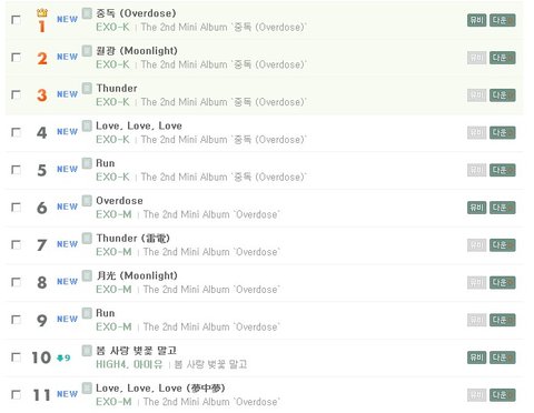 1위부터 9위까지 다 엑소고 11위도 엑소ㅠㅠ