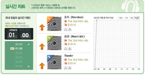 멜론 지붕뚫기 정말 힘든데 엑소케이 중독, 월광, 썬더 다 지붕 뚫었어 ㅠㅠㅠ