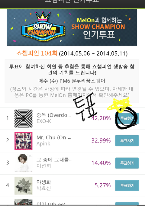 우리 멜론 쇼챔피언 투표 하자!!!!!!!