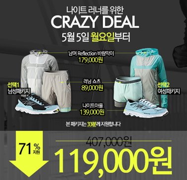 바람막이+러닝 쇼츠+러닝화가 모두 119,000원!