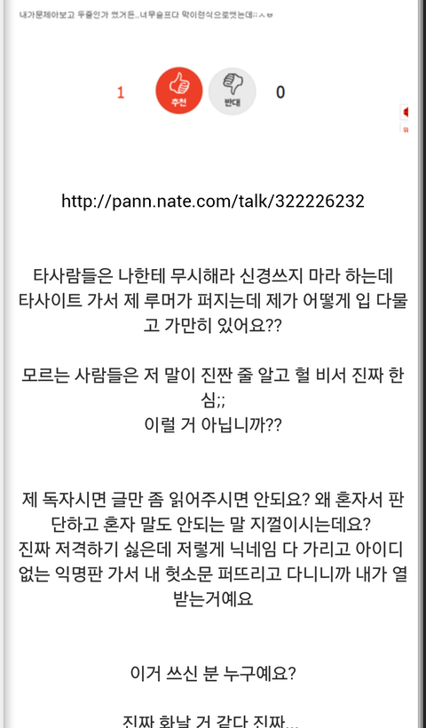 이렇게 작은거 하나에 자신이 언급 됐다는 가정에 까달라는 식으로 링크까지 걸어놓고 저격함