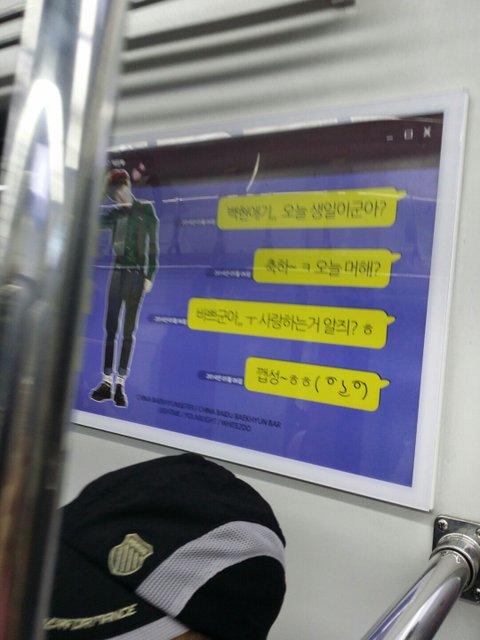 서울역으로 출근하는데, 쭉 앉아서 오다가 문득 내릴 때가 되서 고개 들었는데, 12월의 기적 옷을 입은 백현이 사진이 있는거야.ㅋㅋ