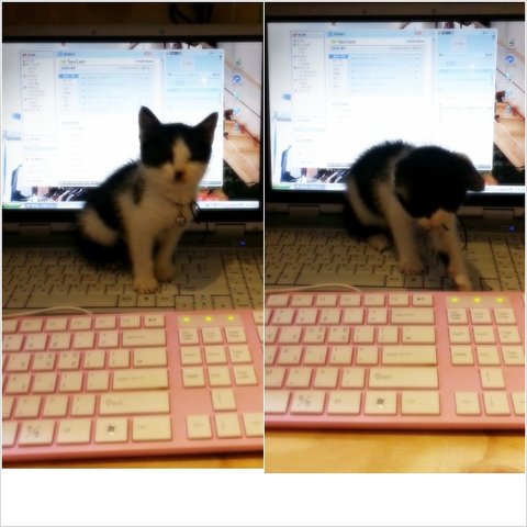 어린게 엉금엉금 키보드위로 올라가