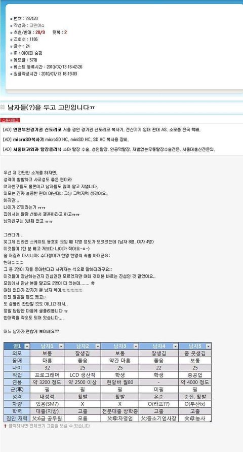 남자들을 두고 고민입니다.