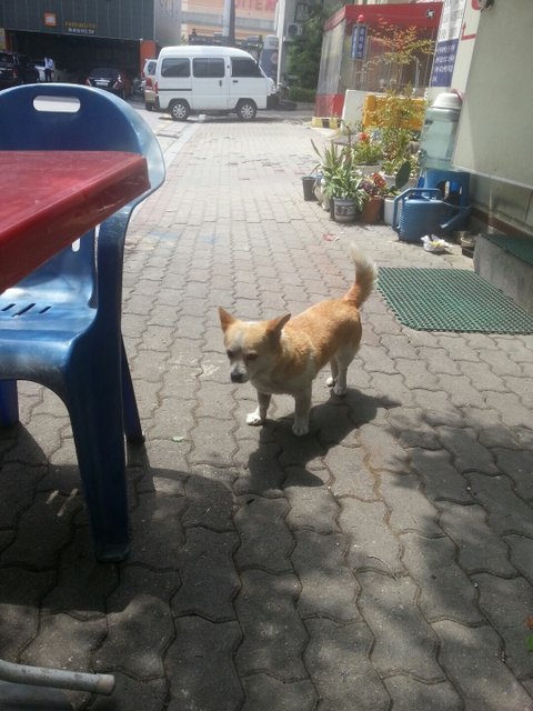 =보나스로 남친이 늘 먹을거 챙겨주지만 손에 먹을거 없으면 절대 안 온다는 옆집 개사진
