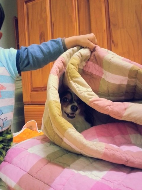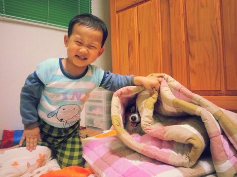 이불 틈으로 파고들어 또라리를 틀고 있는 몽실이를