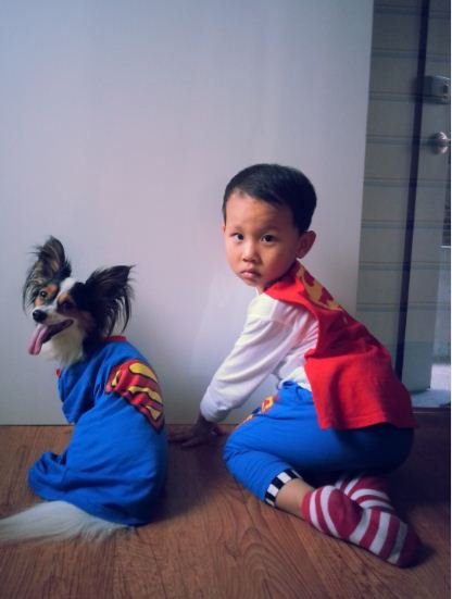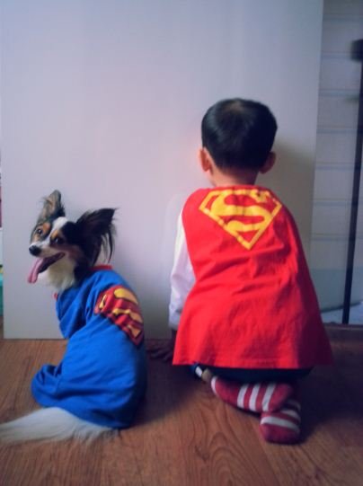슈퍼맨 옷과 망토를 나눠입었어요~~