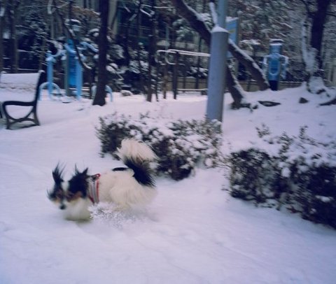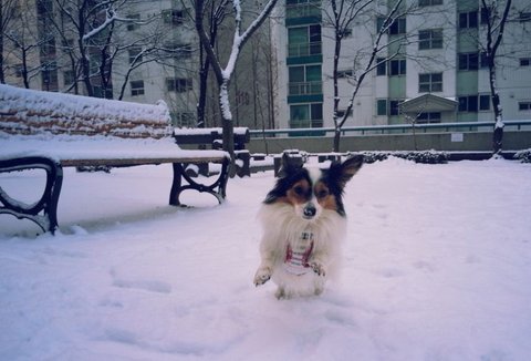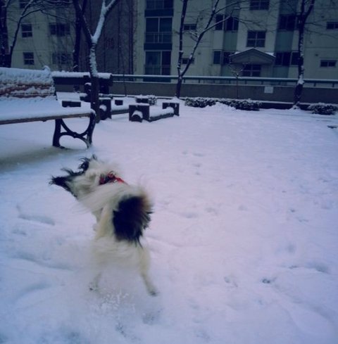 벤치위에서 몽실이에게 눈을 흩뿌리니 눈을 다 먹어버리겠다고 이러고 있네요~ㅎㅎ