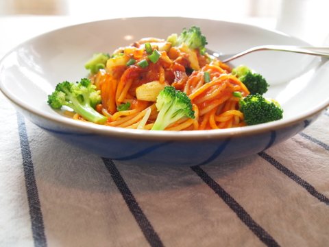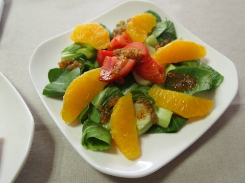 이것은 청경채에 오렌지 토마토 썰어넣고