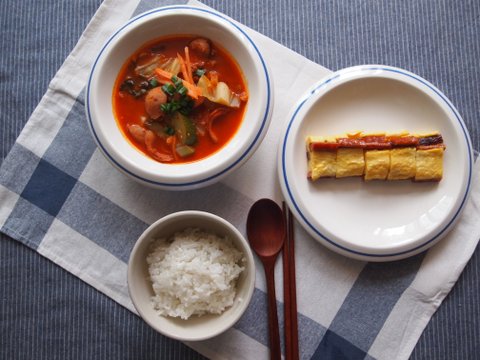 냉동실에 잠자던 부대찌개용 햄넣고 계란말이 해서