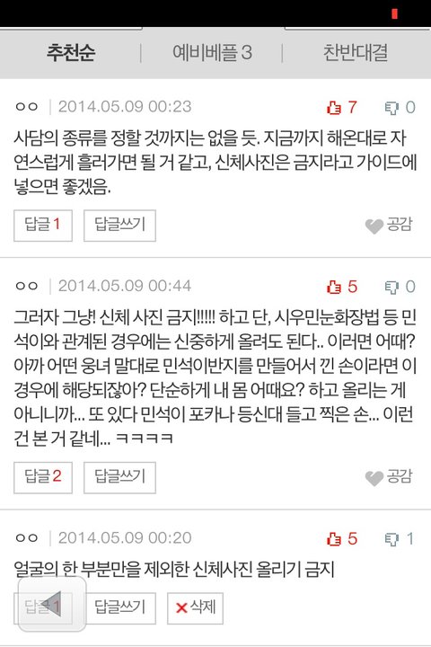 나 아까 글 쓰니 웅녀야 ! 의견수렴한 결과는