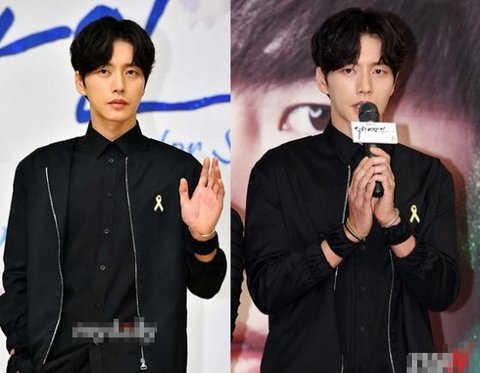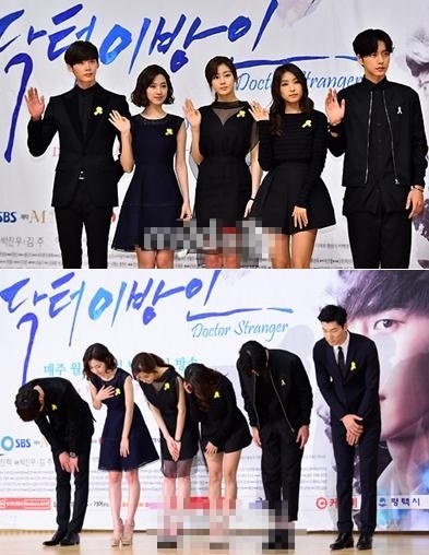 배우 모두 블랙 의상과 노랑 리본으로 엄숙했어요