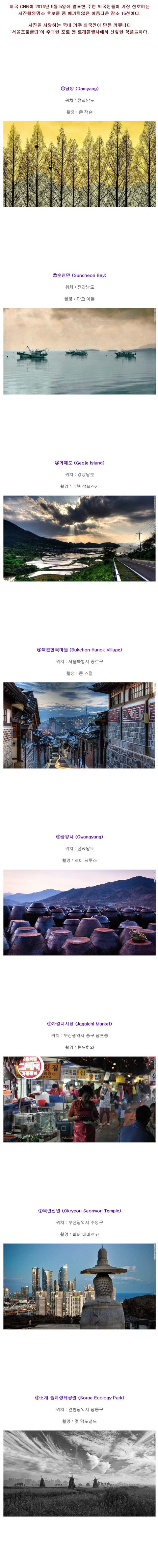 외국인들이 한국에서 가장 선호하는 사진촬영 명소 15곳