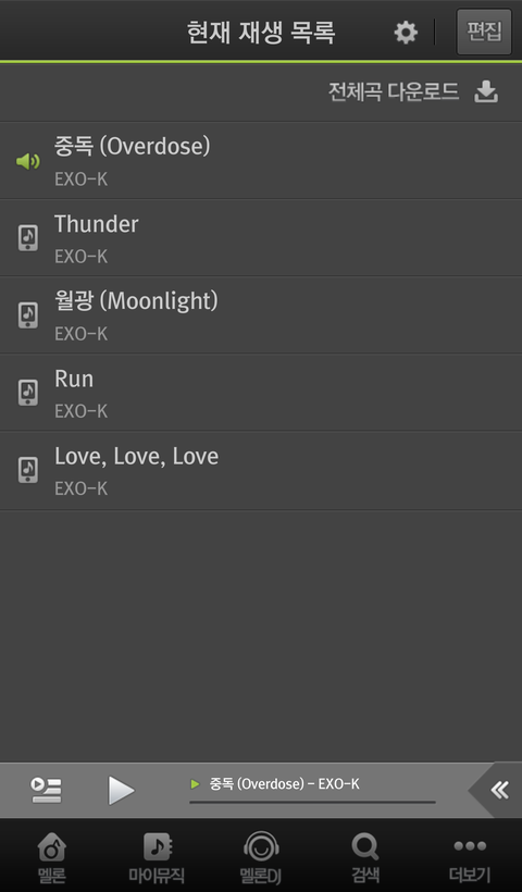 40개중에 중돗포함수록곡합해서 5개를 일단내폰에 다운받았고