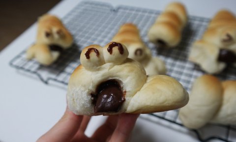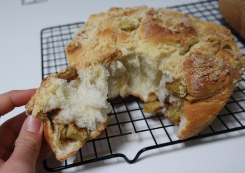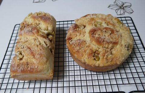 소보루를 올린 고구마식빵이에요^^ 두 가지 모양으로 만들어봤어요.