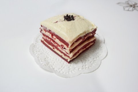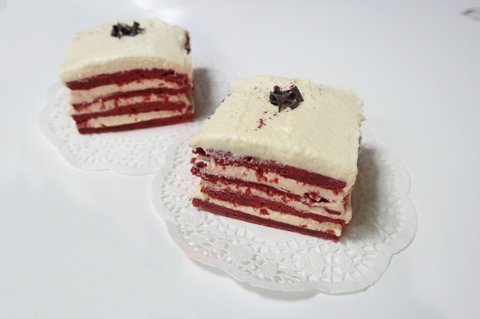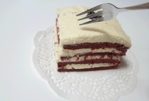 색이 고와 더욱 맛있게 느껴지는 케이크죠? 레드벨벳. 이름도 예쁘고.