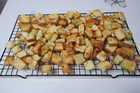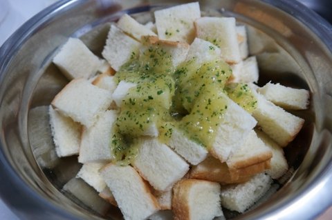 맨식빵이 심심할 땐 소스만들어서 대충섞어 오븐에 구워주면 마늘 크루통이 돼요^^