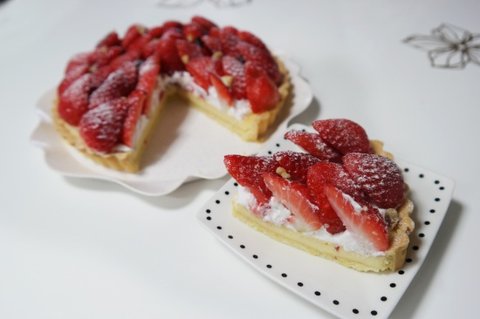 한 조각 잘라내니 딸기가 너무 공격적이네요.