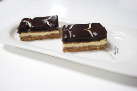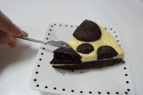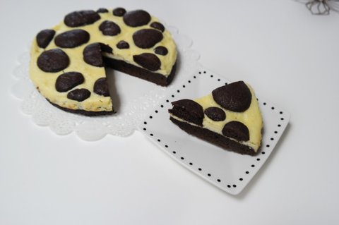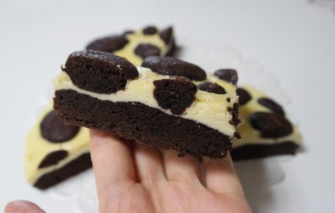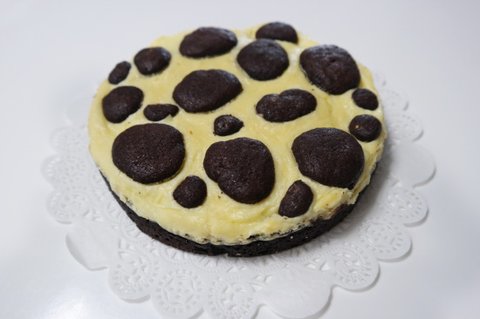 브라우니를 동그랗게 모양내서 치즈케이크 반죽 위로 올려준 거예요^^