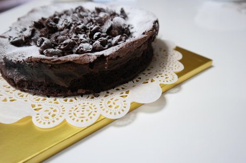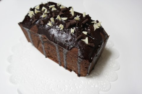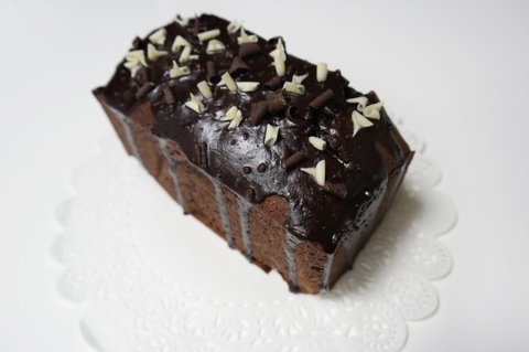 가나슈를 올려 마무리한 초코파운드케이크예요~!