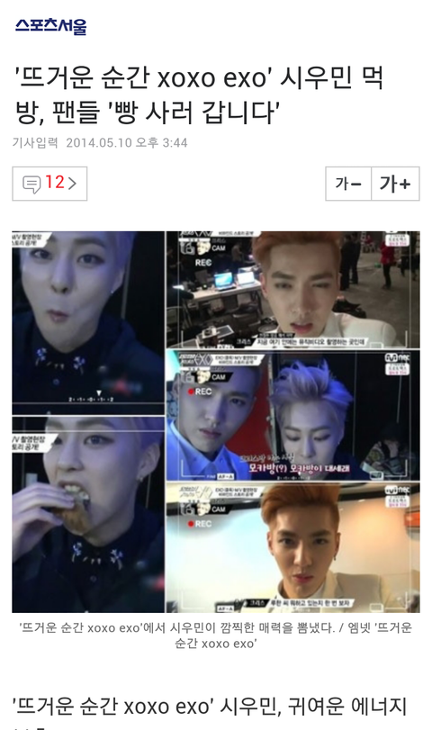 시우민 먹방, 팬들 '빵 사러 갑니다' ㅋㅋㅋ기사제목ㅋ