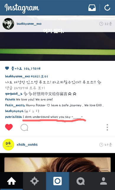 자기는 백현이의 말을 이해못하겠다네요.