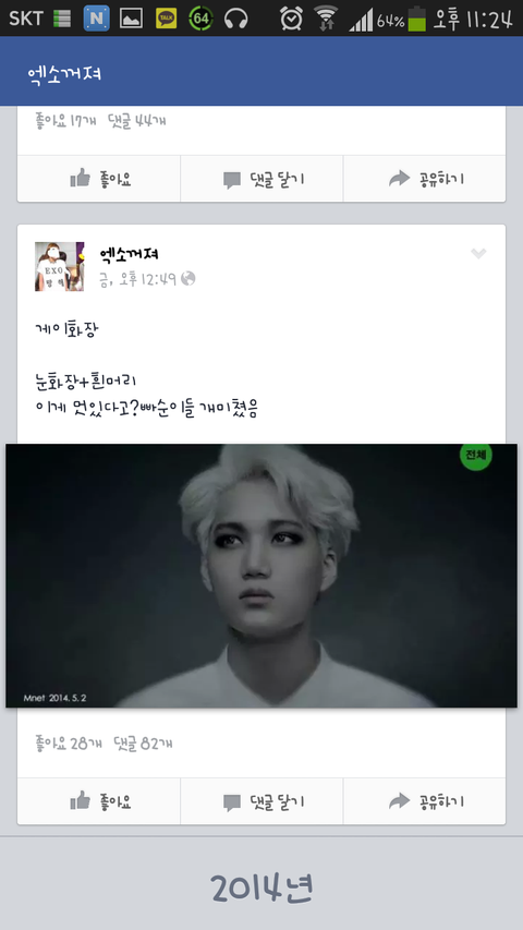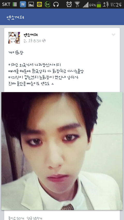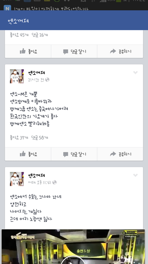 여기 페이지 엑소꺼져 가서 신고좀해줘ㅠㅠ 5분도안걸리는거야 ㅠㅠ 페이지 좋아요는 700명이넘어..댓글도가관이야