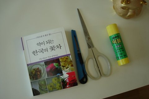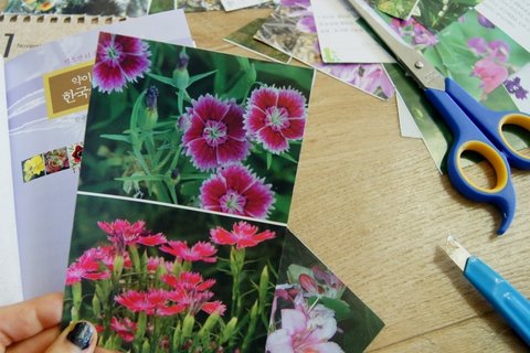 요렇게 오른쪽 꽃사진을 칼로 잘라냅니당. 손조심놀람