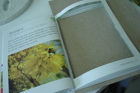 열심히 자르다보면, 흰색 테두리만 남은 책과