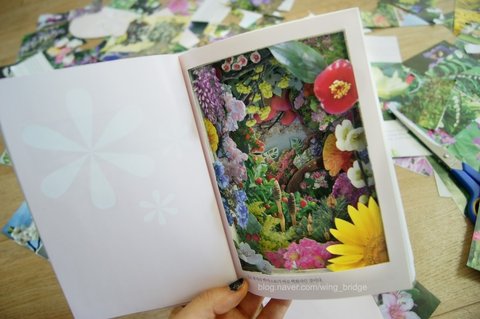 헐.... 첨에 귀퉁이에 붙일때 음??? 전 크리스마스 카드 처럼 둥실 튀어나오는 입체만 생각 했는데 갑자기 완성품이 .... 꼭 이상한 나라 엘리스가 걸어나올 것 같아요 !!! 진짜 이쁘다 너무 이뻐요 ㅎㅎ !!