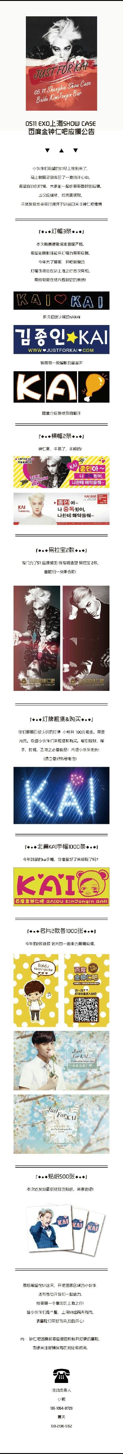 저는 종인오빠 중국팬 예요.I am shellysusu. 오늘 중국인어들 종인오빠를 위해 많이 준비 했서요. 미안 해요 if there are any format error~~~ Jongin oppa is very very happy today~ 1.kai-fan union