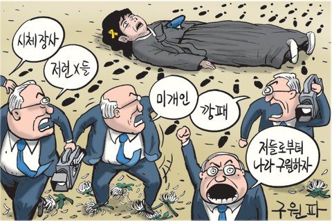 - 경찰만 유족들 에워쌀 뿐 7시간 동안 청와대 직원은 단 한 명도 나오지 않아.