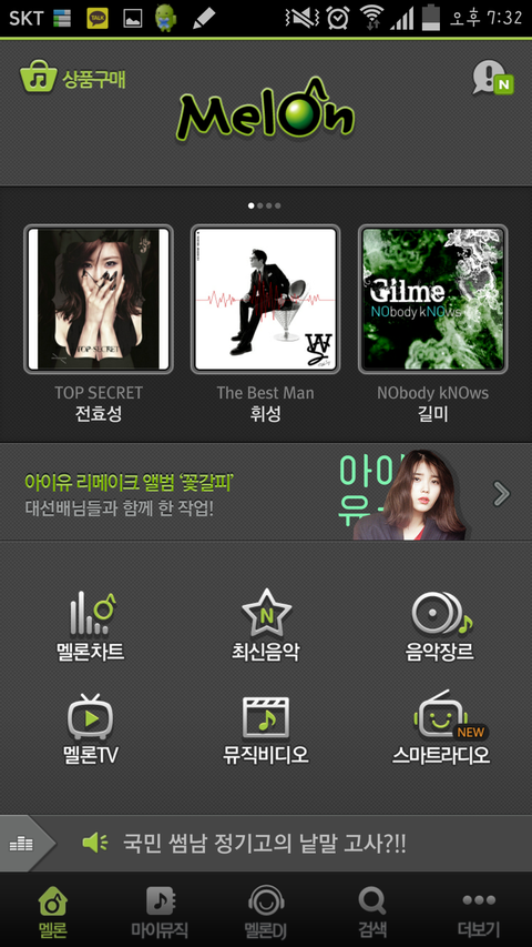 일단 컴퓨터면 멜론플레이어깔고 폰이면 멜론깔아줘