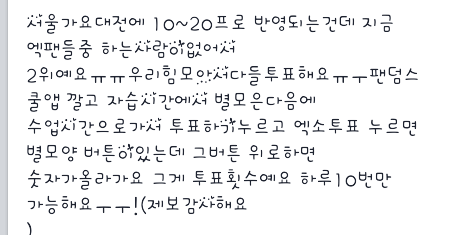 저두 페북보고 지금 투표다하고 왔어요~~ ㅠㅠㅠ 다들 투표좀해주세요!!!!
