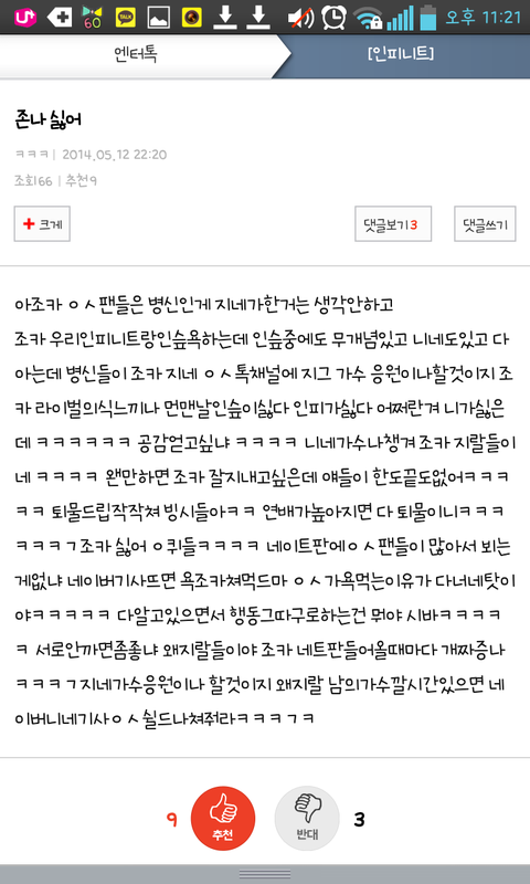 이거 ㄹㅇ 싸우자는거지?ㅋㅋㅋㅋㅋㅋㅋㅋㅋ아시발련들조카찌질하게 우리팬들없는 엔터톡에서글싸지르는꼴 보소
