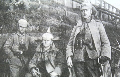 "영국과 독일 병사들이 함께 사진 찍다"라는 제목으로 게제된 사진