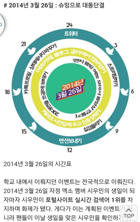 그니까 애초에 기사 포커스가 지오디야. 그때랑 지금 비교하는거. 그래도 지오디는 1세대 선배님인데 대표로 민석이 생일 거론 된거니까 영광이다. 손호영님과 민석이 생일이 같은것도 신기하고.... ㅋㅋ 어쨌든 기자님이 해피 시우민데이가 인상깊으셨나봐. 우리가 일부러 실검 올린게 아니란것도 정확히 알고 계시네. ㅋ