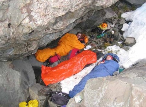 이렇게 암벽에 와이어를 매달고 자는것도 비박이라고 하는데