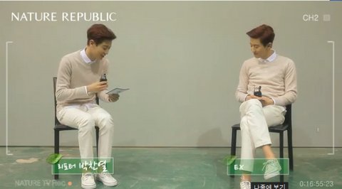 리포터와 엑소 찬열일 때 자세부터가!~~ㅋㅋㅋ